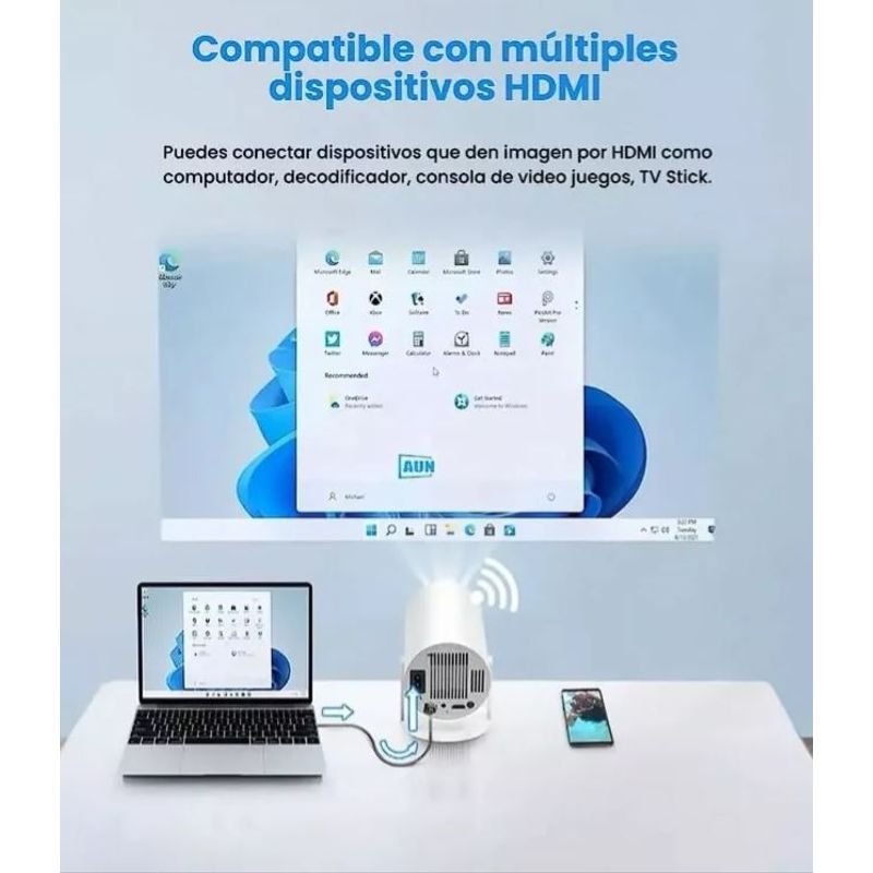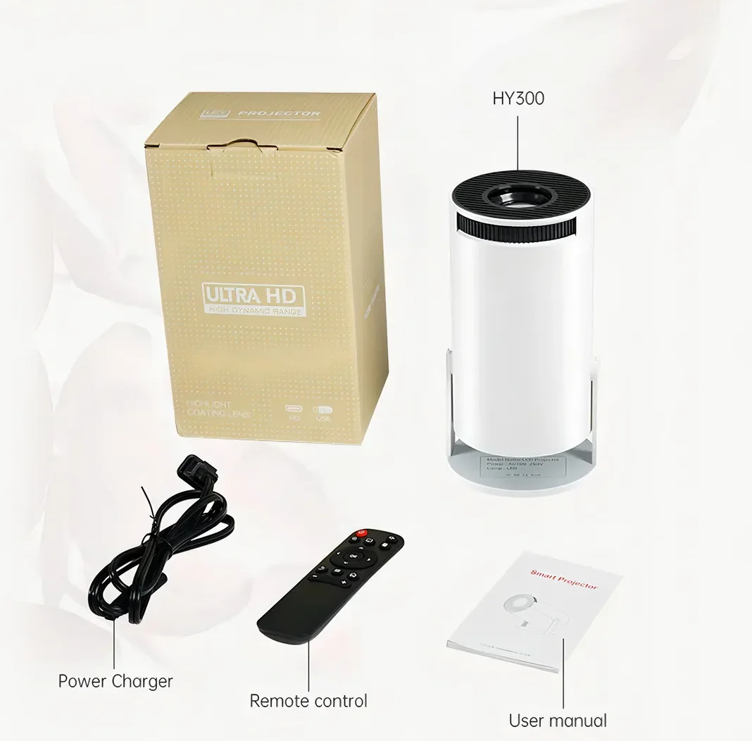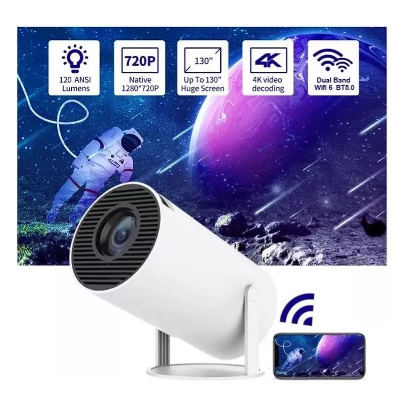 Transforma tu sala en un cine con el HY300, un proyector compacto, potente y lleno de funciones inteligentes. Disfruta tus series, películas y juegos favoritos en pantalla gigante con imagen nítida y sonido envolvente.